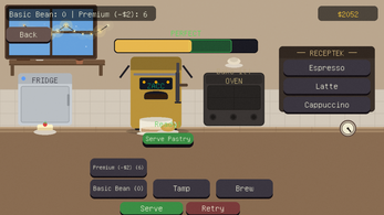 - Upgrade: Buy upgrades with your hard earned tips, like a sprinkler, more precise coffee machine and more.
